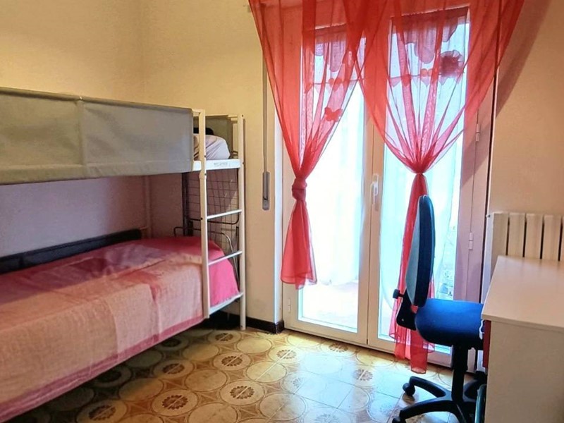 ingresso su disimpegno, cucina abitale con balcone, ampio soggiorno con balcone, camera da letto matrimoniale con balcone, camera doppia con balcone, ulteriore vano adibito a camera singola, un bagno con doccia dotato di finestra.