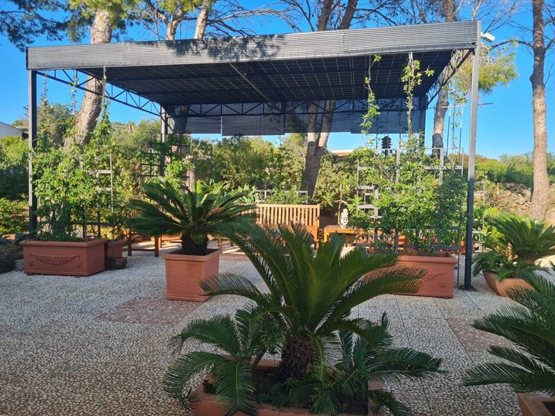 è facile infatti che ci si innamori talmente tanto di questo luogo speciale così da decidere di stabilirsi permanentemente nella perla nera del Mediterraneo! Tornando allabitazione, le dotazioni sono tante come il riscaldamento con alimentazione a pellet e con caldaia e radiatori in acciaio Zender, boiler per la produzione dellacqua calda da utilizzare nelle stagioni calde, infissi in pvc di alta qualità con ampie vetrate anche con aperture elettriche e complete di zanzariere, soffitti con travi a vista, adeguata riserva idrica, impianti tutti a norma, parcheggio anche esterno. Da sottolineare, inoltre, la luminosità di tutti gli ambienti che in virtù delle grandi vetrate rende gli stessi confortevoli e con una impagabile vista sul verde circostante. Il giardino è curato in ogni dettaglio, con piante ornamentali e flora mediterranea accudite in maniera puntuale e attenta e tante zone attrezzate per il relax di ogni genere, con gazebi sparsi per la proprietà, permettono di godere appieno dellavvolgente natura ogni ora del giorno e della sera. Una cucina allaperto con forni, barbecue e piastre, per ogni tipo di cena a tema, consente di sbizzarrirsi e condividere con gli amici più cari le spensierate serate isolane. In più, la ciliegina sulla torta è la grande e impagabile comodità di acquistare una villa dotata di buona parte del mobilio di base come la cucina, fornita di elettrodomestici di altissimo livello, la camera da letto e i servizi dotati di ogni comfort. Che dire