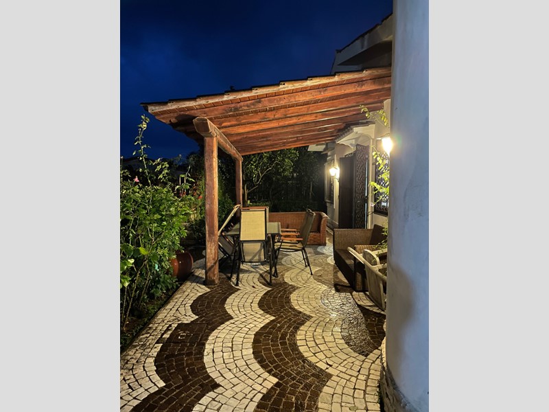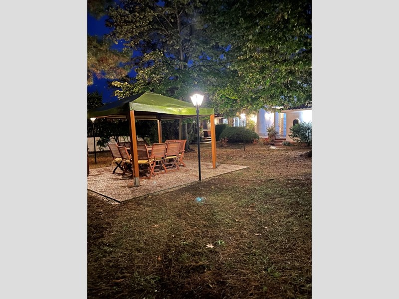 La proprietà è circondata da un ampio giardino curato, arricchito da zone mattonate e aree verdi, perfette per momenti di relax all'aperto. Completa lo spazio esterno un grazioso gazebo , forno in muratura e posti auto interni comodi e riservati.