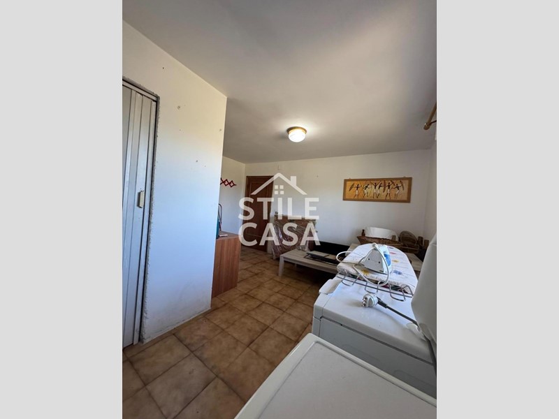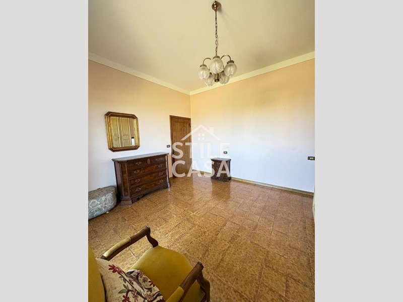L' Abitazione principale si trova al primo piano ed è composta da Ingresso, Cucina abitabile, Soggiorno con camino, Disimpegno, Due camere matrimoniali con terrazzo comunicante, Bagno finestrato