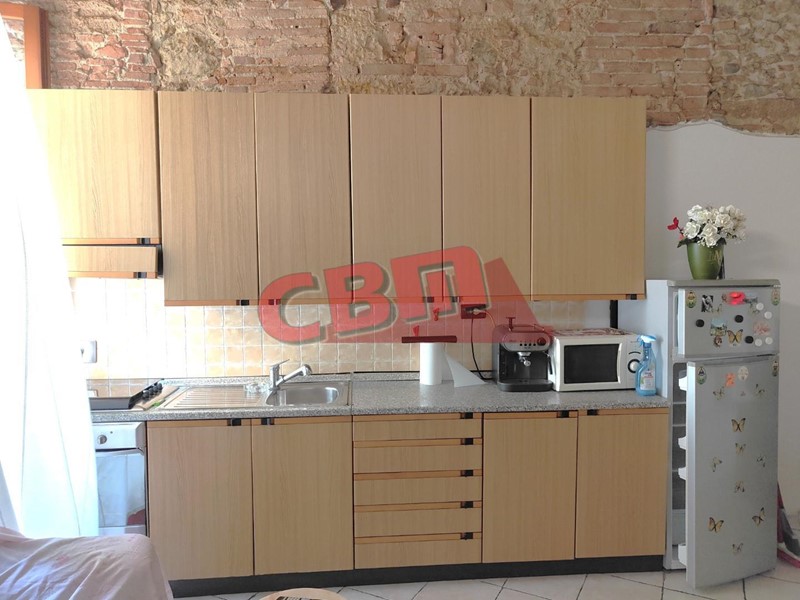 L'abitazione è composta da un soggiorno con zona cottura a vista, ampio studio (o ulteriore soggiorno arredabile anche con divano letto) separato da un bell'arco di mattoni, disimpegno dal quale si acceda alla camera e al bagno con finestra e doccia.