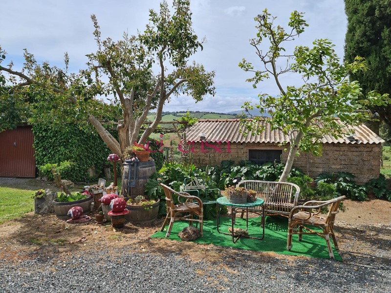 Rif. RC 421 - CINIGIANO (GR) - LOC. PIANTAVERNA - Porzione di casale con vista panoramica sulla dolce collina di Cinigiano. La proprietà si sviluppa su due livelli indipendenti, di circa 80mq ciascuno; il piano terra è composto da ampio soggiorno, cucina, camera matrimoniale, camera doppia, bagno c.f.; al primo piano, al quale si accede dalla scala esterna, è composto da ingresso, soggiorno con balcone, cucina, camera matrimoniale, camera singola, bagno c.f. e ripostiglio. Nel giardino di si trovano tre magazzini per circa 180mq ed una cantina di 17mq. Completano la proprietà 15ha di terreno, di cui 2ha di uliveto con 300 piante in produzione, e 1ha di vigneto.