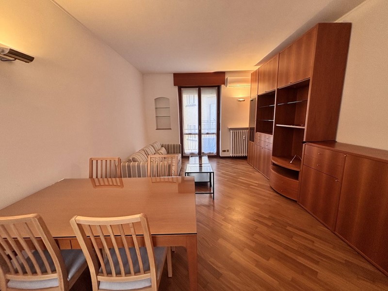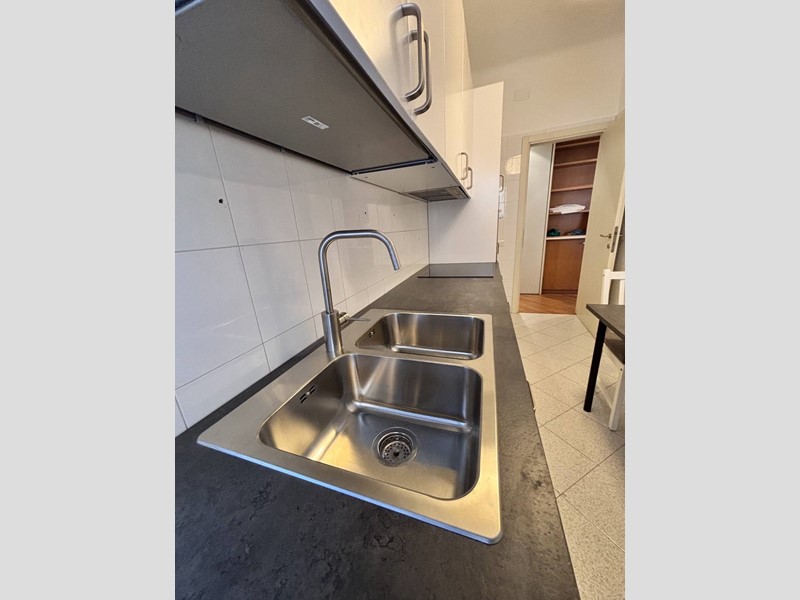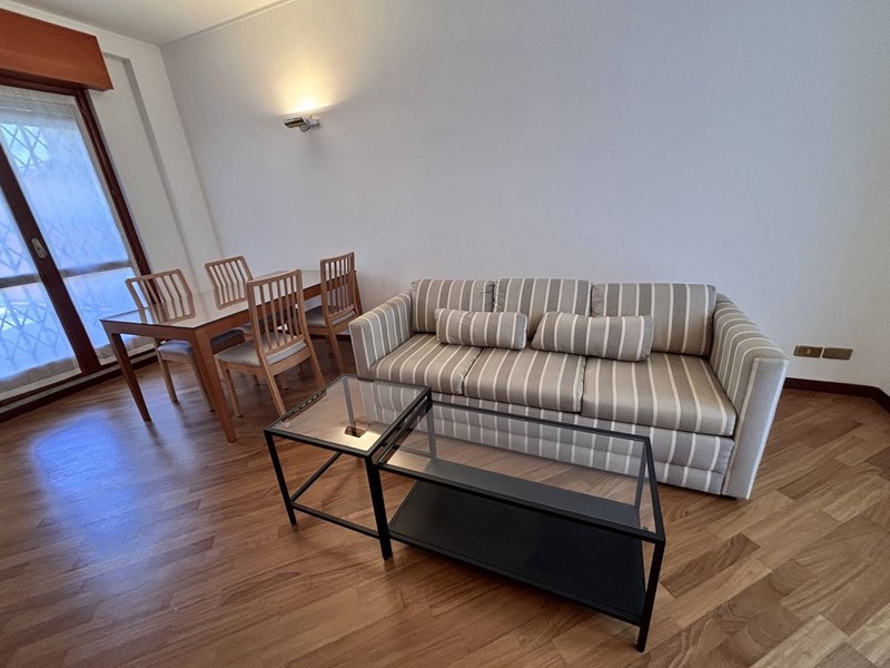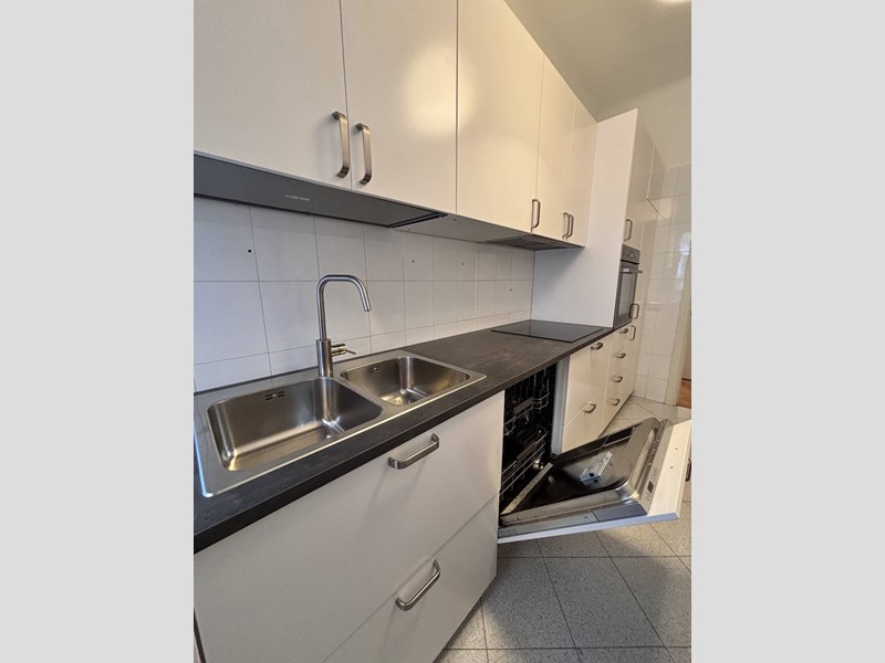 Lappartamento è arredato, completo di: cucina con doppio lavello, dotata di fuochi a induzione, forno, lavastoviglie, frigorifero e scaldabagno elettrico nuovo, tavolo con sedie; soggiorno con divano, tavolo con sedie, parete attrezzata con mobile-tv e pensili; camera con letto matrimoniale, comodini e armadio; bagno completo con lavasciuga.