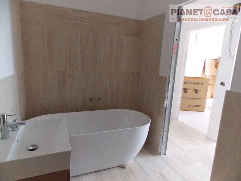 L' immobile, posto al primo piano con ascensore, è composto da ingresso su ampio soggiorno con angolo cottura, disimpegno, 2 camere (matrimoniale e singola), 2 bagni ad aerazione forzata (uno con vasca ed uno con doccia), ripostiglio/locale tecnico e balcone.