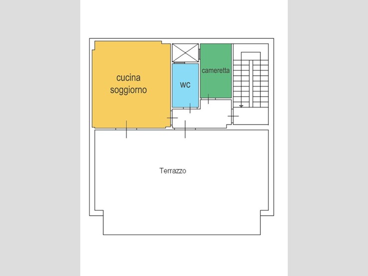 Sicilia, Palermo, Bagheria, via Fuxa a pochissimi passi da via Mattarella, nel cuore della città, in zona ben servita da negozi e servizi vari, proponiamo in vendita piano attico in piccola palazzina con soltanto tre unità immobiliari, composto da disimpegno, ampia cucina-soggiorno con accesso a spazioso terrazzo a livello, cameretta e wc con doccia. Edificio con prospetti rifatti, ideale per uso investimento e accorpabile all'appartamento sito al secondo piano di 105 mq. Cod. Rif. A/10
