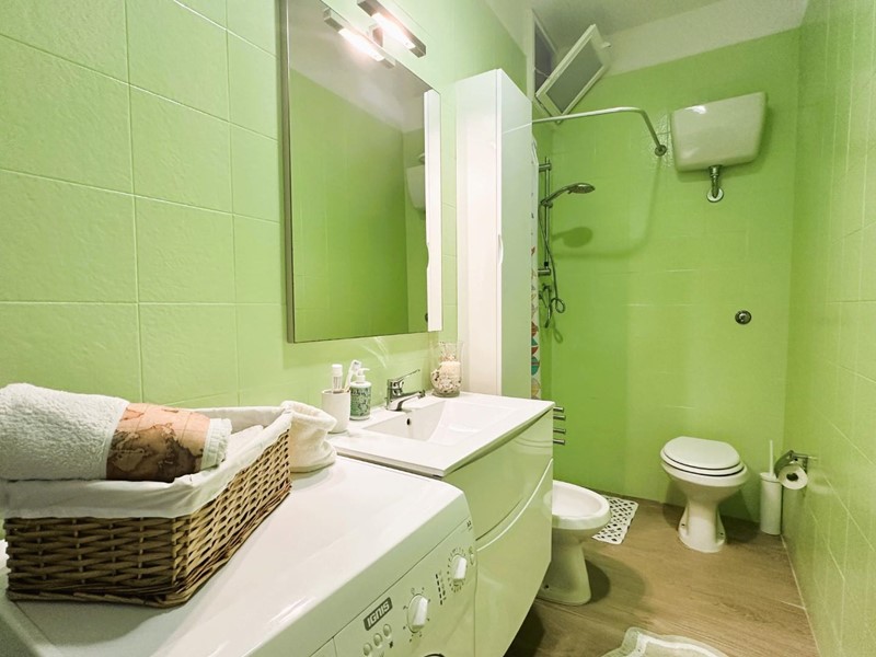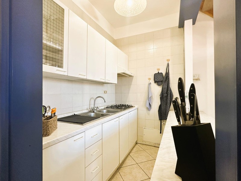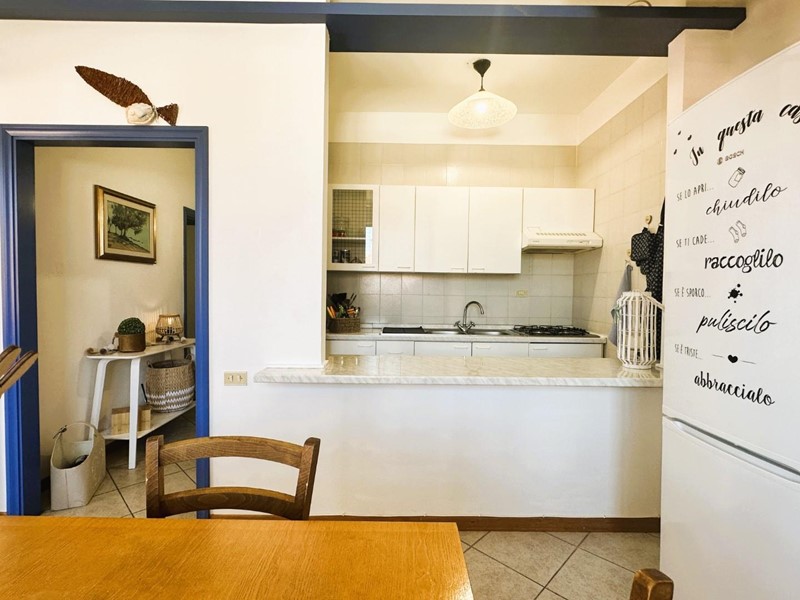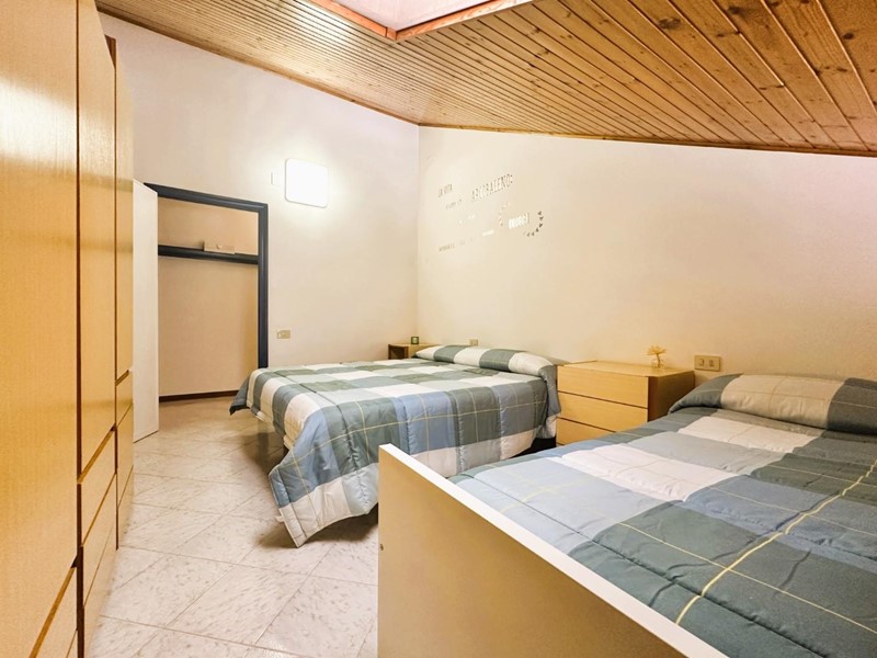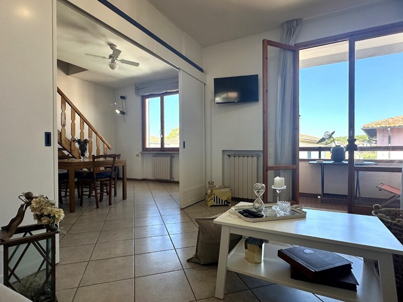 Caletta, vicinissimo al mare, zona Bagno Tirreno, ottimo appartamento all'interno di un complesso condominiale composto da due fabbricati circondati da ampi spazi verdi. L'abitazione si trova nel fabbricato più interno e quindi in posizione più riservata e tranquilla all'ultimo piano (una rampa esterna ed una sola interna). Disposto su due livelli si compone di piccolo ingresso, primo bagno con doccia, cucinotto che affaccia sulla sala da pranzo e ampio e luminoso salotto che all'occorrenza può diventare una camera avendo una porta scorrevole che divide i due ambienti; il balcone presente comunica entrambe le stanza del piano. Tramite scala interna si accede al piano mansarda composto da 2 camere matrimoniali e secondo bagno; le camere hanno sia la finestra che un lucernaio e nel corridoio è presente il climatizzatore. Il punto di forza di questa abitazione, oltre alla posizione molto vicina al mare e servita da negozi di vario genere è sicuramente il garage di 25 mq. Riscaldamento Termoautonomo. Ottimo investimento per le locazioni turistiche. RIF 1413
