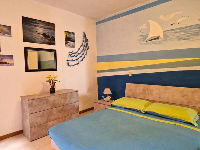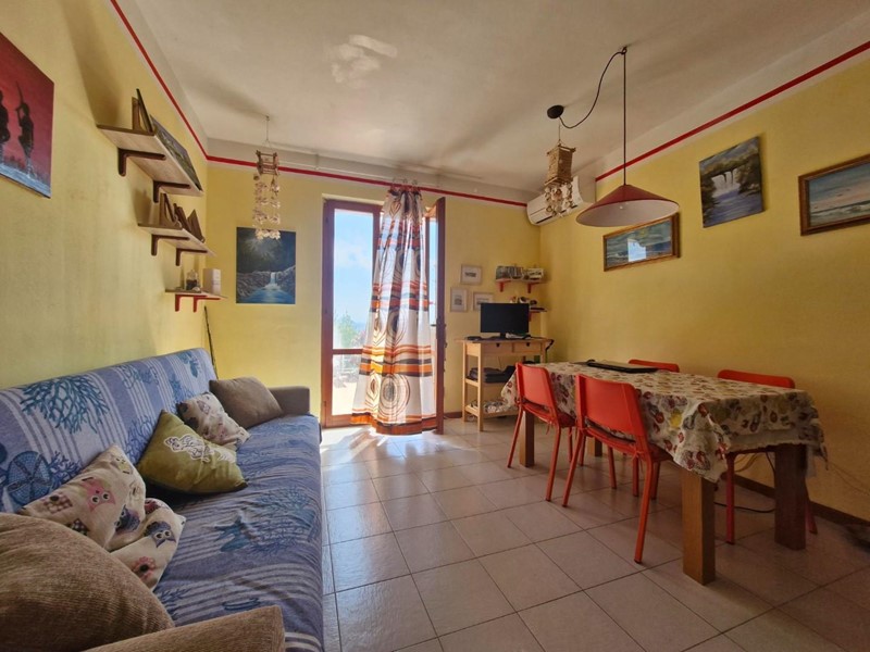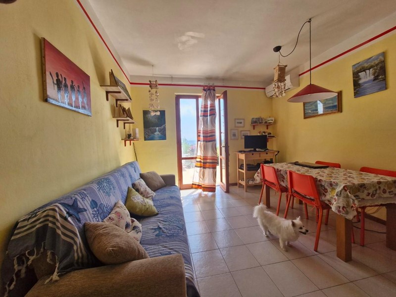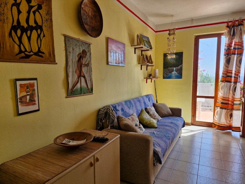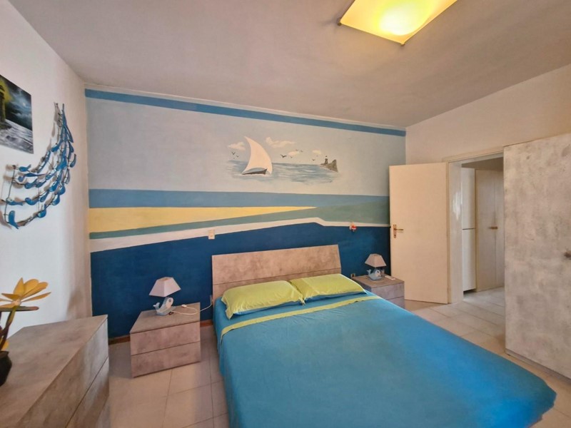 Salita delle Palme – grazioso appartamento trilocale di mq. 63 con splendida vista mare. L’immobile è composto da resede esterna piastrellata di mq. 17, angolo cottura con soggiorno e divano letto, disimpegno zona notte con armadio, bagno con doccia e boiler, 2 camere matrimoniali di cui una con porta-finestra su corte esterna con ripostiglio. Completano la proprietà un garage di mq. 25 e posto auto.