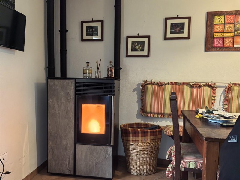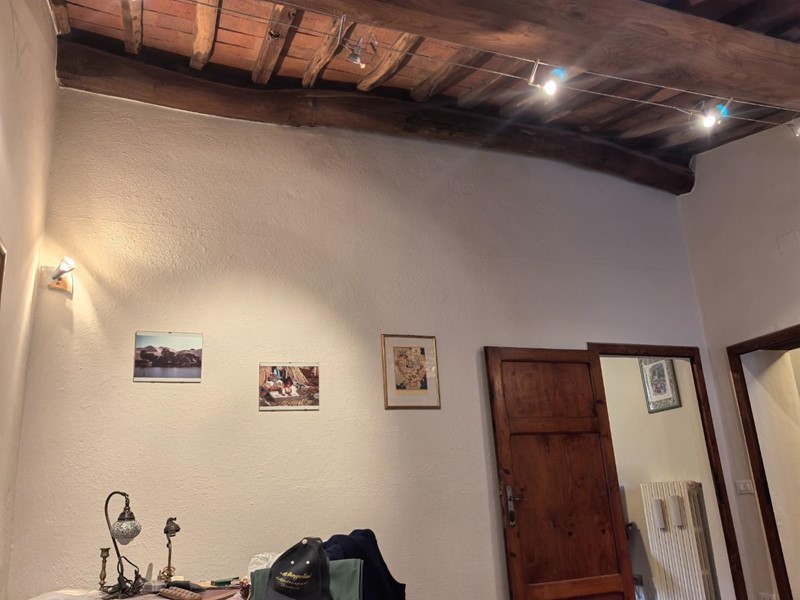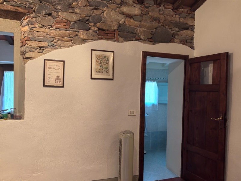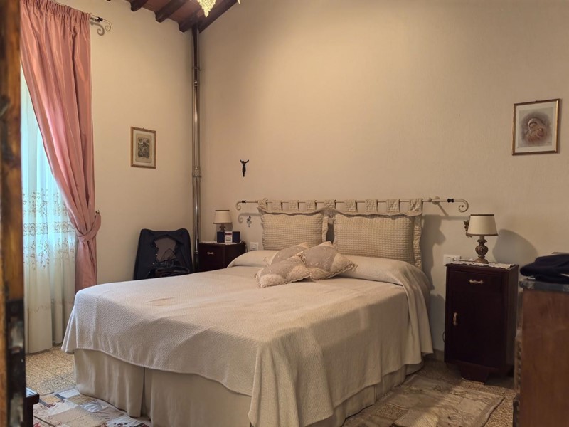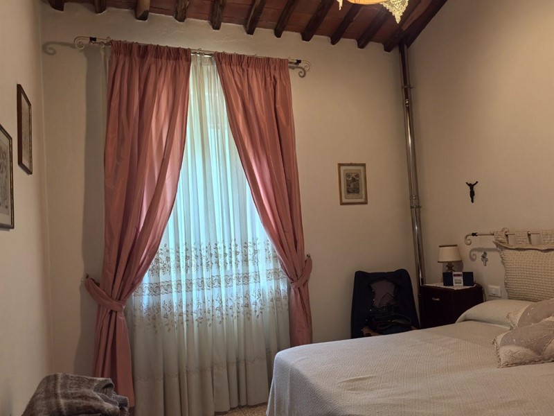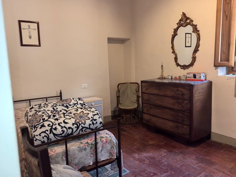 In zona tranquilla immersa nel verde porzione centrale terra/tetto di colonica con ingresso indipendente, Al piano terra troviamo cucina , tinello, salotto con camino e bagno con doccia, al piano superiore vi è un ampia camera matrimoniale, con soffitti con travi a vista, camera doppia, camera matrimoniale di passaggio, studio e bagno con doccia. Dal salotto tramite una porta finestra si va nel giardino dietro la casa che immersa nel verde che si affaccia ad un bosco con un piccolo ruscello troviamo un annesso con cucina con camino, cantina, stanza e grande stanza ideale per serate con amici. Davanti alla casa recintato troviamo un terreno di circa 6000 mq. con ulivi, e alberi da frutto, oltre ad un grande garage di circa 50mq.