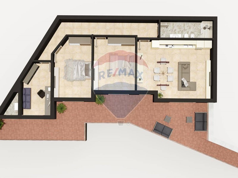 E' composto da ingresso su corridoio che disimpegna 3 camere, cucina abitabile, bagno e lavanderia, il tutto servito da un comodo terrazzo.