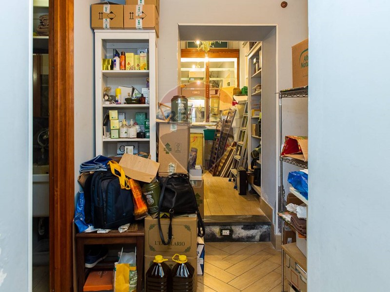 Due vetrine su strada che danno accesso a due ampi locali collegati tra di loro di 20 mq circa ciascuno, sul retro un disimpegno porta ad un bagno preceduto da un anti bagno ed un retro bottega con accesso da un cortile su Via Teatro Massimo, 6.