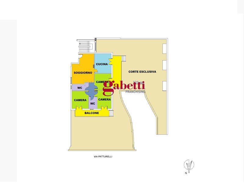L'appartamento, con una metratura di circa 120 mq. interni, si compone di: soggiorno, cucina, disimpegno, tre camere da letto, doppi servizi e due balconi.
