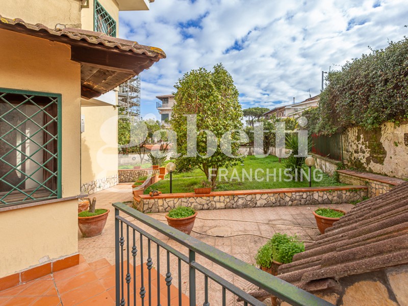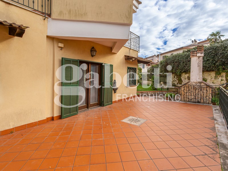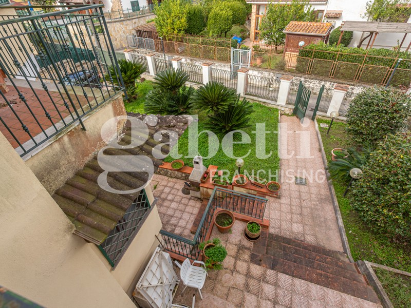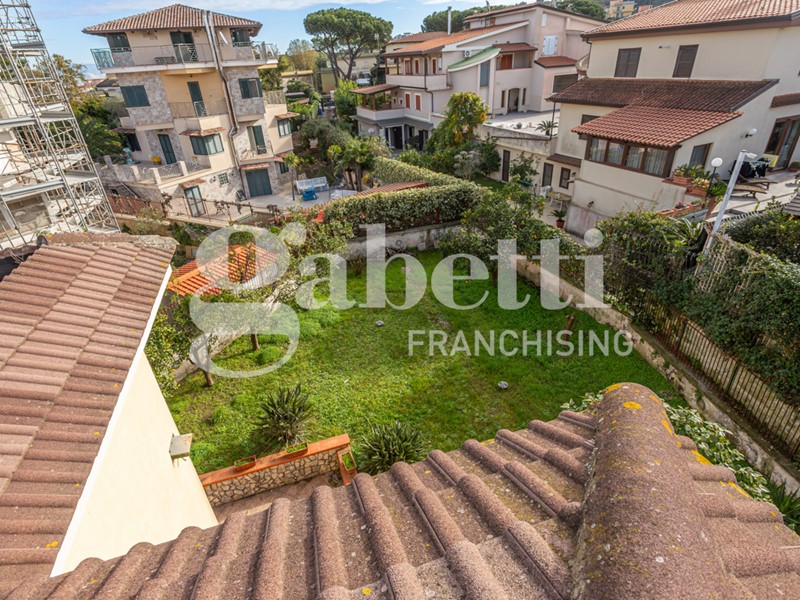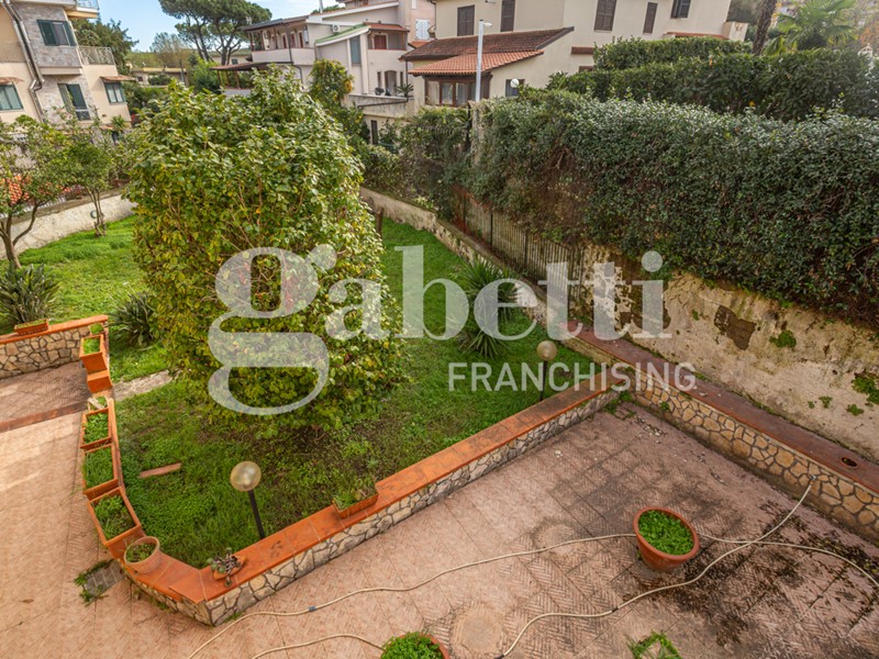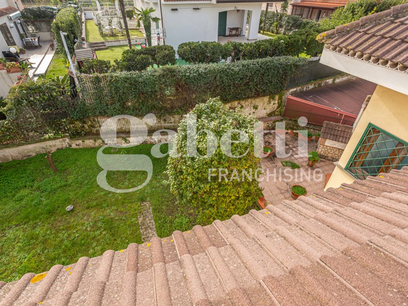 La villa, di 210 mq distribuiti su tre livelli, è circondata da un giardino di circa 600 mq che abbraccia l'intera proprietà, creando un'oasi privata con un mix perfetto tra prato verde e pavimentazione ideale per cene all'aperto e momenti di relax.
