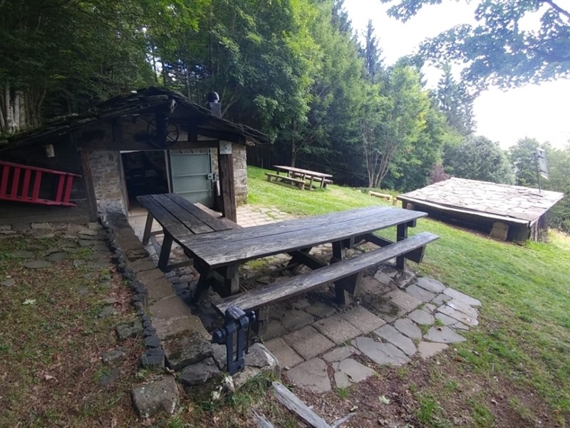 Nel dettaglio: il fabbricato in pietra (dimensioni interne: larghezza 4.38m, lunghezza 6m, altezza al colmo 2.34m, altezza in gronda 1.6m) con tetto in legno a vista coperto da tavolato, doppio strato di guaina e pietre di ardesia si compone di un porticato con sedute in legno, ingresso in unico vano composto da zona giorno_notte. Gli spazi sono dotati di: tavolo piccolo, cucina, letto, tavolo grande, sedute, camino, stufa a legna, etc… lo stesso è approvvigionato di: