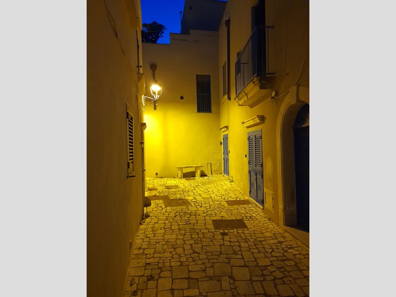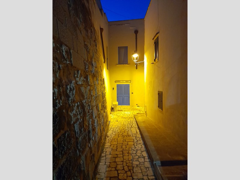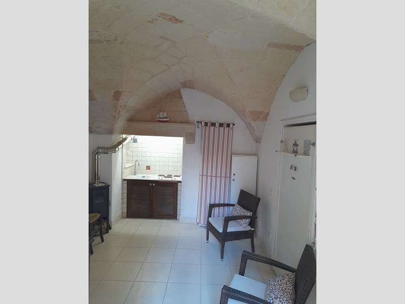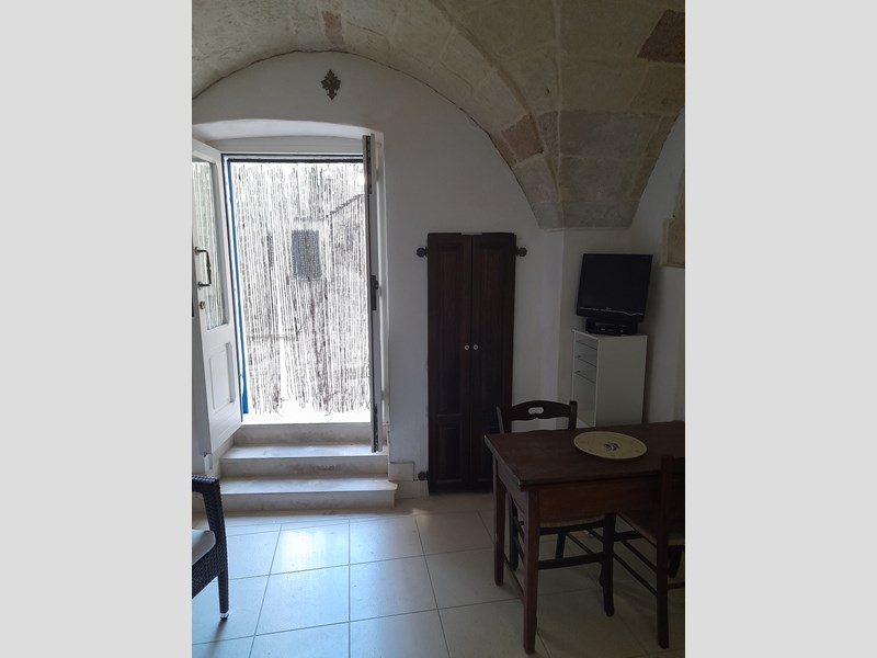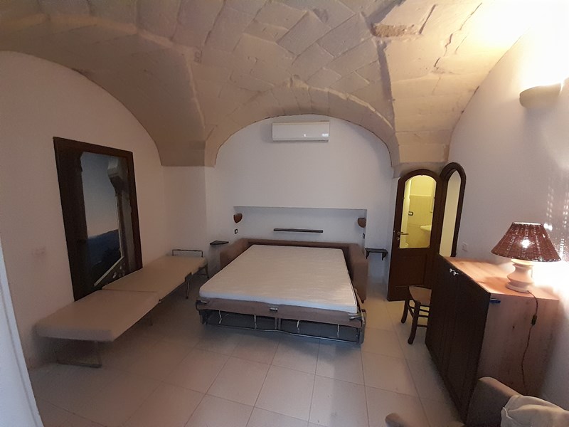 Appartamento bilocale, con doppi servizi, ristrutturato e subito abitabile, con volte a stella. Piano terra di un palazzo storico in parte incassato nelle mura antiche di Otranto, fra le due torri Duchesca e Ippolita. Si trova a pochi metri dalla Cattedrale e dal Castello, nel punto più alto e tranquillo del centro storico (senza movida e negozi).
