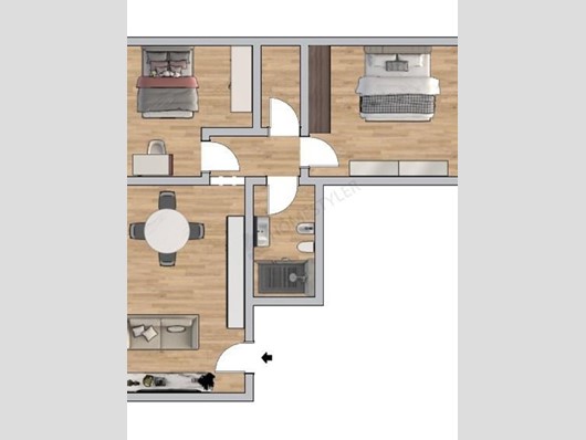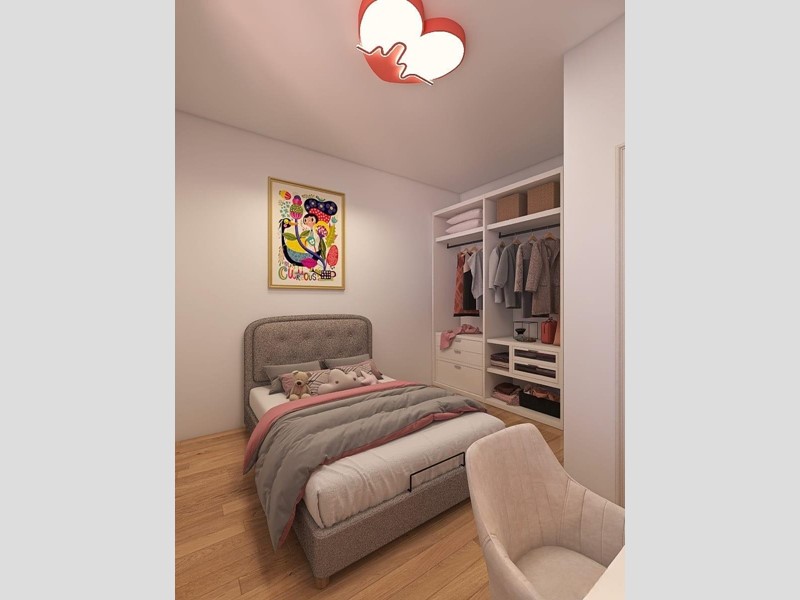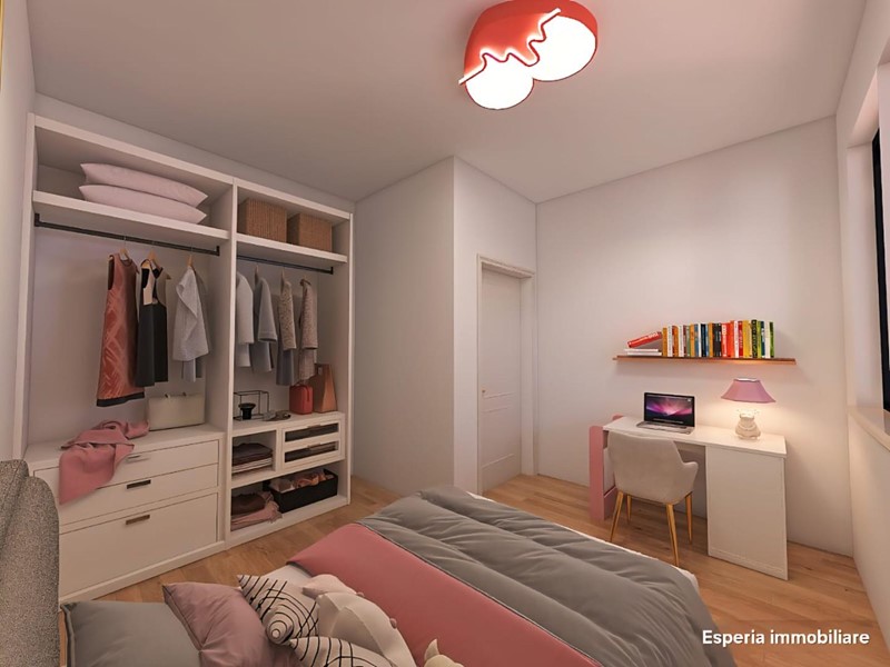 Composizione: ingresso in luminoso soggiorno con angolo cottura, disimpegno zona notte, due camere da letto, bagno (s/f) e comodo ripostiglio. (Immagini rendering ipotetici)