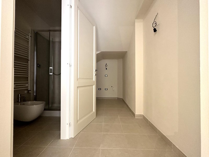 Rosignano Solvay - Caletta Alta. Immerso nel silenzio e nel verde a soli 1800 metri dal mare di Caletta, all'interno di un piccolo edificio di cui è stata ultimata la completa ristrutturazione, proponiamo appartamento di 2 vani su unico livello con ingresso da scala esterna, piano rialzato, che conduce alla terrazza abitabile di 11 mq.. La palazzina in cui è inserito si compone di 8 alloggi totali , 4 per piano e per complessivi 3 livelli includendo il piano terra dove sono presenti i garage. L'abitazione si compone di ampio soggiorno con angolo cottura (21,50 mq.), disimpegno, una camera matrimoniale e il primo bagno finestrato. Sottostante all'abitazione un grandissimo e comodissimo garage di 45 mq. con bagno completo e locale lavanderia. Rifiniture di ottimo livello, finestre ermetiche in legno con vasistas, persiane in alluminio, portoncino blindato, sanitari sospesi, box doccia in cristallo, caldaia Lamborghini. Zona residenziale tranquilla e di facile collegamento; ideale sia come abitazione residenziale che come casa uso turistico. Pronta consegna. (int.4 edifico A piano rialzato). Vendita soggetta ad imposta di registro; non presente condominio.