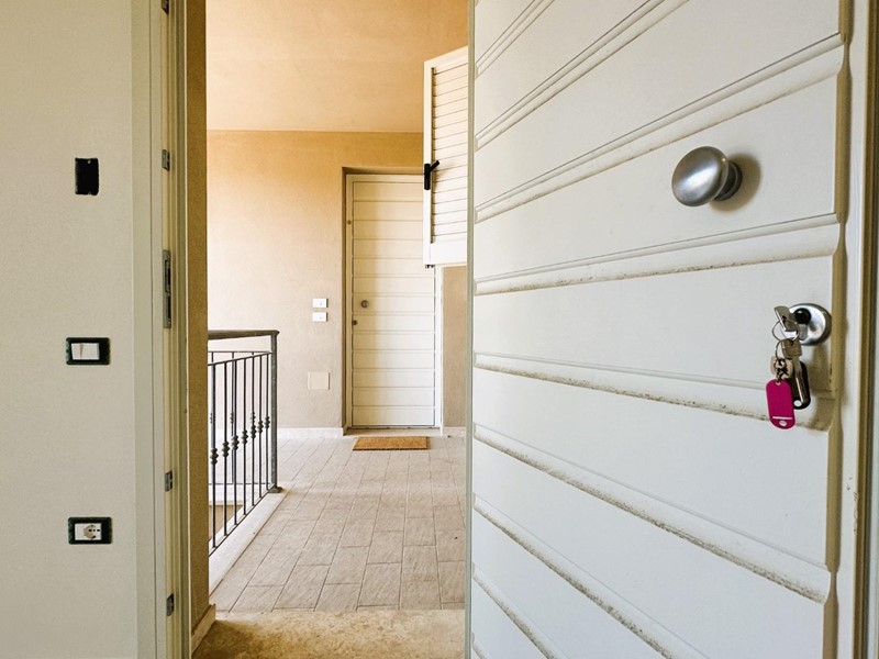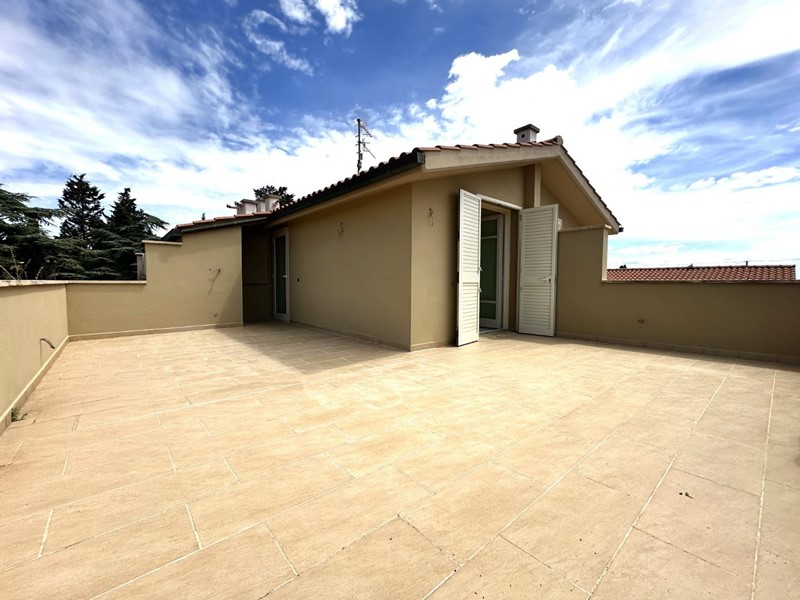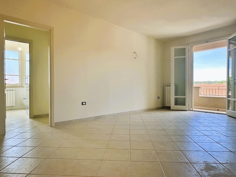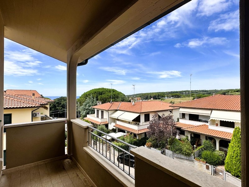 Rosignano Solvay - Caletta Alta. Immerso nel silenzio e nel verde a soli 1800 metri dal mare di Caletta, all'interno di un piccolo edificio di cui è stata ultimata la completa ristrutturazione, proponiamo appartamento di 3 vani, disposto su due livelli, con ingresso da scala esterna, al secondo ed ultimo piano con bellissimo ed ampio solarium vista mare e collina. La palazzina in cui è inserito si compone di 8 alloggi totali , 4 per piano e per complessivi 3 livelli includendo il piano terra dove sono presenti i garage. L'abitazione si compone di soggiorno con angolo cottura (23,80 mq.), disimpegno, una camera matrimoniale e bagno finestrato. Si accede al piano superiore a mezzo scala autoportante presente nel soggiorno e troviamo un comodissimo e luminoso locale multiuso ed il belissimo solarium panoramico (alla terrazza si accede anche dal disimpegno delle scale. Nella vendita è incluso anche il garage di 18 mq. al piano terreno. Rifiniture di ottimo livello, finestre ermetiche in legno con vasistas, persiane in alluminio, portoncino blindato, sanitari sospesi, box doccia in cristallo, caldaia Lamborghini. Zona residenziale tranquilla e di facile collegamento; ideale sia come abitazione residenziale che come casa uso turistico. Pronta consegna. (int.4 edifico A piano rialzato). Vendita soggetta ad imposta di registro; non presente condominio.