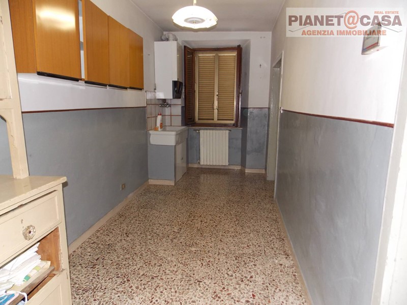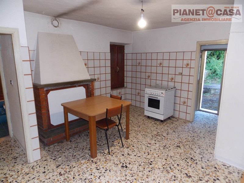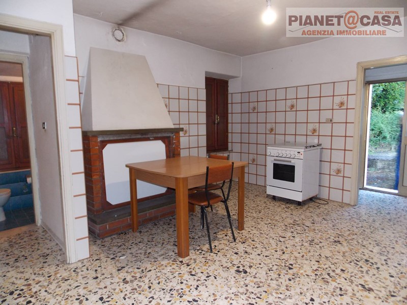 -Piano Intermedio con disimpegno, una cucina abitabile con camino, un retrocucina ed un bagno.