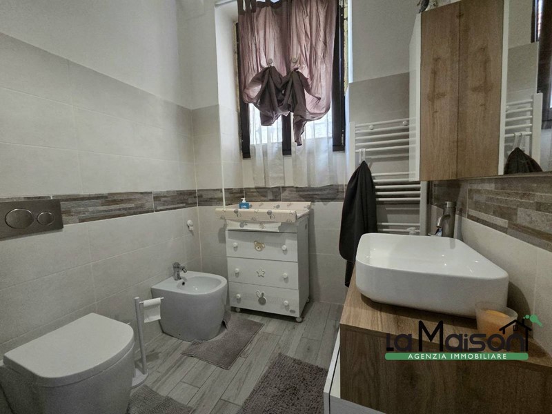 Per completare la zona giorno sita al piano terra troviamo anche il bagno completo di doccia con getti idromassaggio. Proseguendo tramite la scala interna si raggiunge la zona notte, composta da una spaziosa camera matrimoniale ed una cameretta, entrambe con accesso alla balconata; al piano è presente un ulteriore locale da adibire a studio o a seconda delle proprie esigenze di famiglia, inoltre è presente un bagno con doccia che garantisce il massimo comfort e praticità nella vita quotidiana.