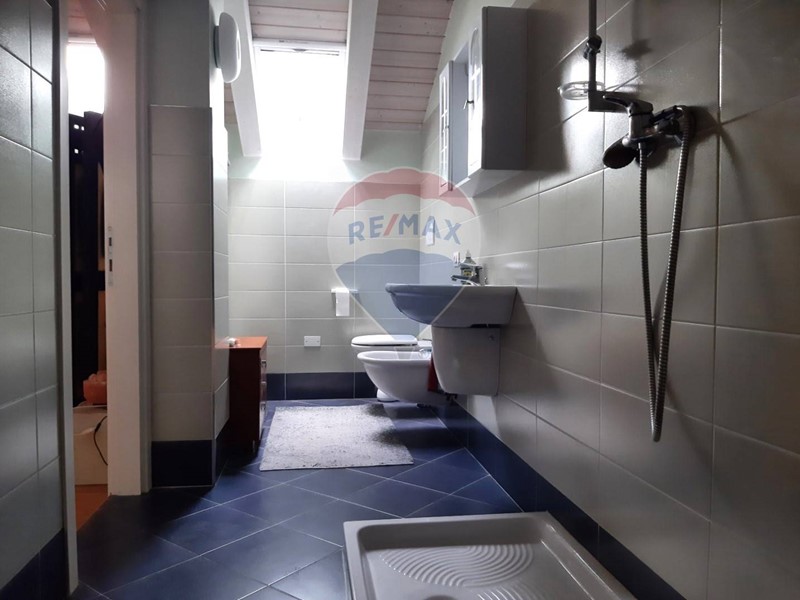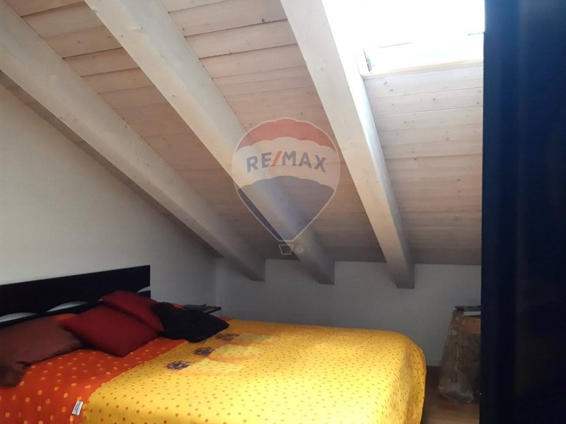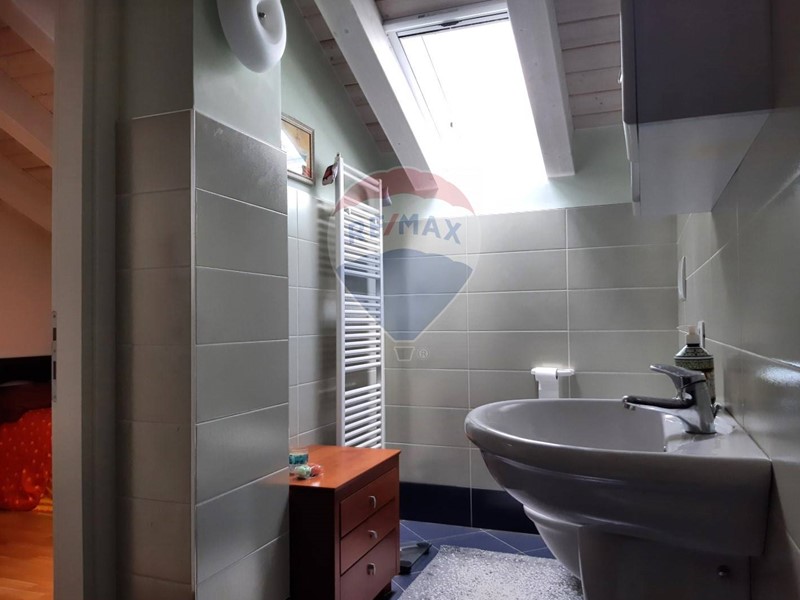 Una scala aperta porta al piano superiore composto da una sala adibita a camera da letto con velux sul tetto, servita da un altro bagno.