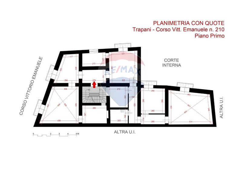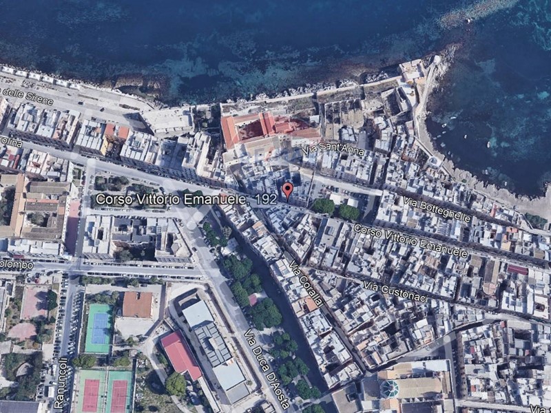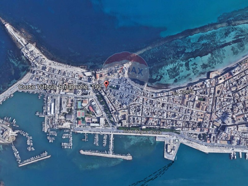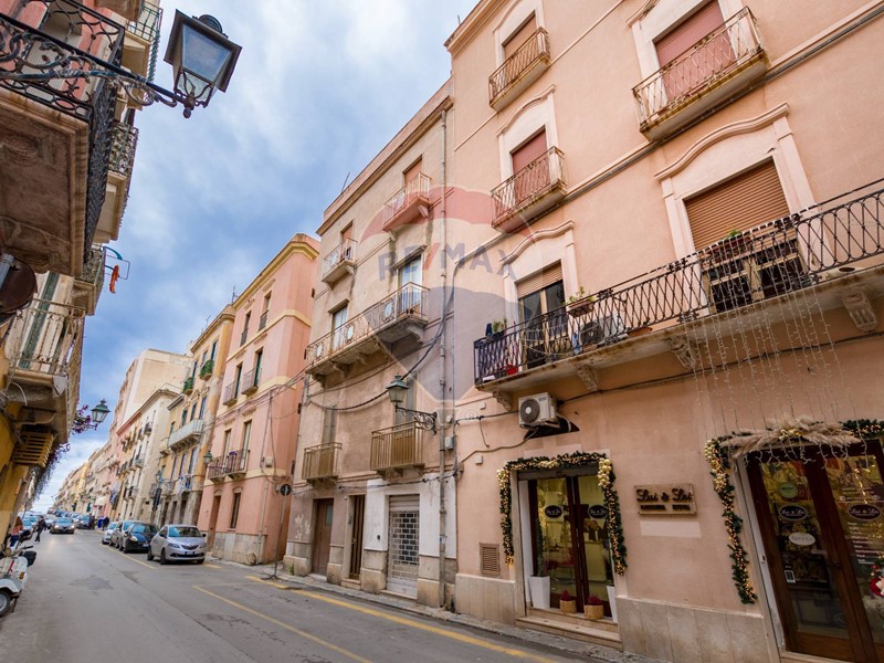 L'appartamento in vendita si trova al primo piano di un edificio storico e gode di una posizione privilegiata ; è ubicato infatti in "La Rua Grande" ossia Corso Vittorio Emanuele, la strada principale e del "salotto buono" della Trapani antica, ricca di palazzi e chiese di architettura barocca oltre a molteplici negozi artigianali e locali di specialità culinarie, a soli due passi dal porto e gli imbarchi per le isole, da Torre di Ligny e dalle Mura di Tramontana.