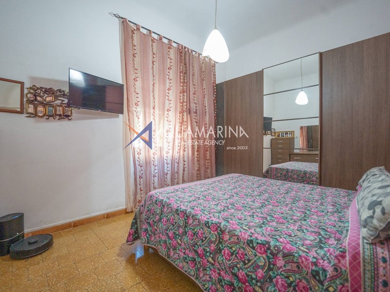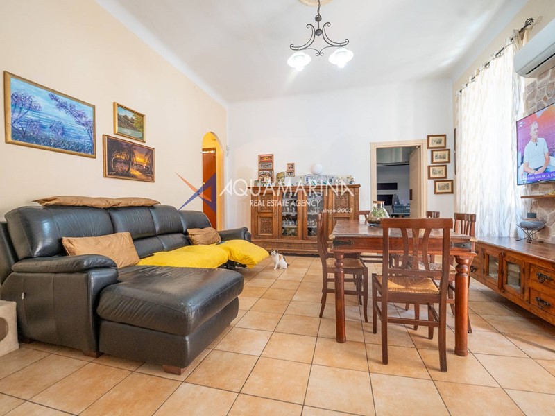 Situato al primo piano di un edificio di due piani, offre una superficie totale di 101 metri quadrati distribuiti in cinque vani, tra cui tre camere da letto spaziose e luminose.