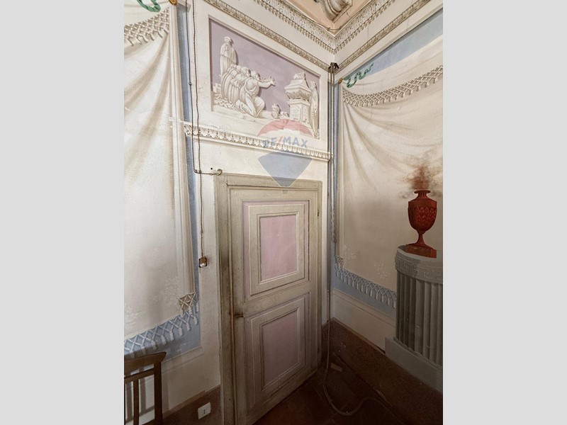 l'abitazione conserva tutto il fascino dell'epoca con soffitti con travi a vista, affreschi, pavimenti in cotto originale, camino e caratteristici affacci sulle via del borgo antico.