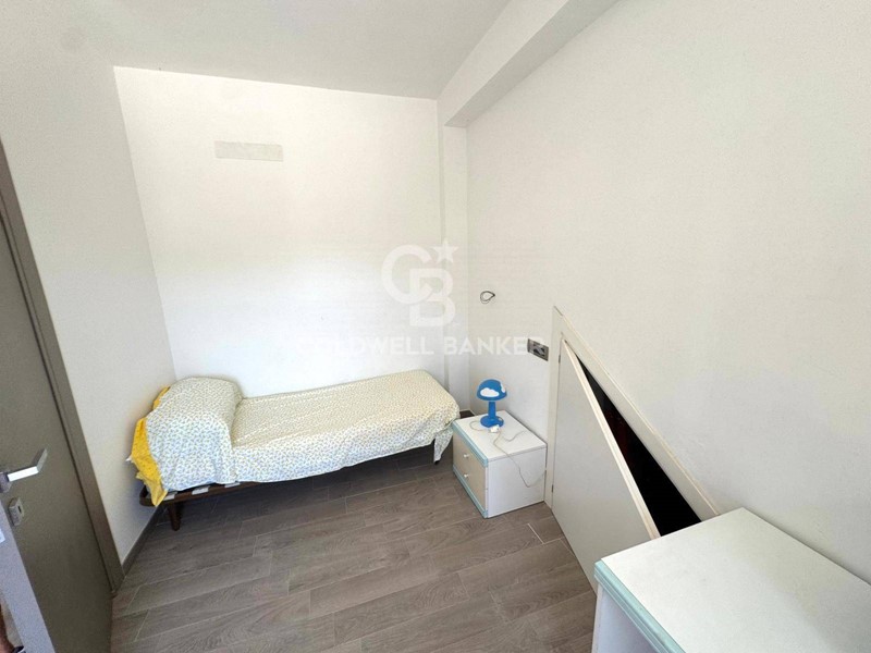 Un dettaglio di pregio è la porta scorrevole che permette di separare in modo pratico e discreto la zona notte dalla zona giorno, garantendo privacy e comfort.