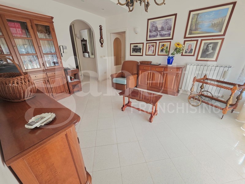 Il piano terra 115 mq composto da doppio ingresso indipendente, soggiorno molto luminoso, sala da pranzo, ampia cucina separata ed abitabile, un ripostiglio, due bagni ed una camera da letto matrimoniale ( con possibilità di realizzare la seconda camera con lavori di modifica interna). Collegato internamente il piano seminterrato di 90 mq dotato di terzo ingresso con portone blindato e composto da ampio salone adibito a sala hobby, lavanderia, ripostiglio e fondo. ( da adibire a rustico /taverna)