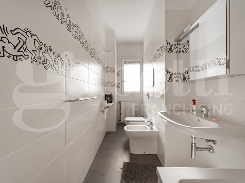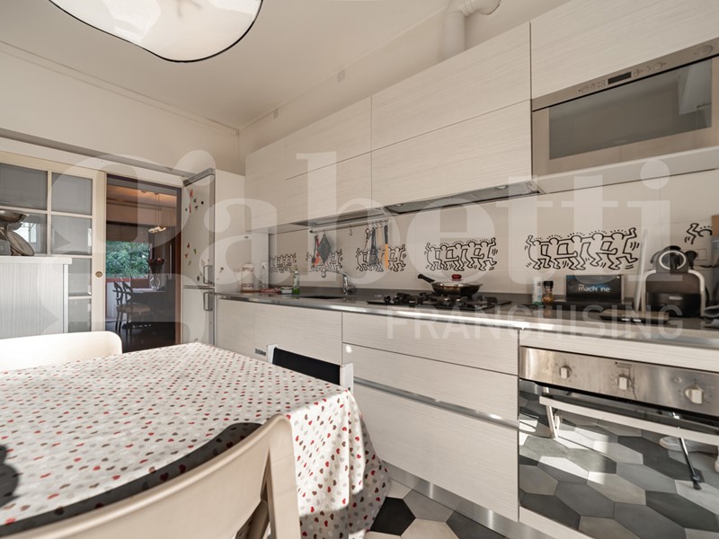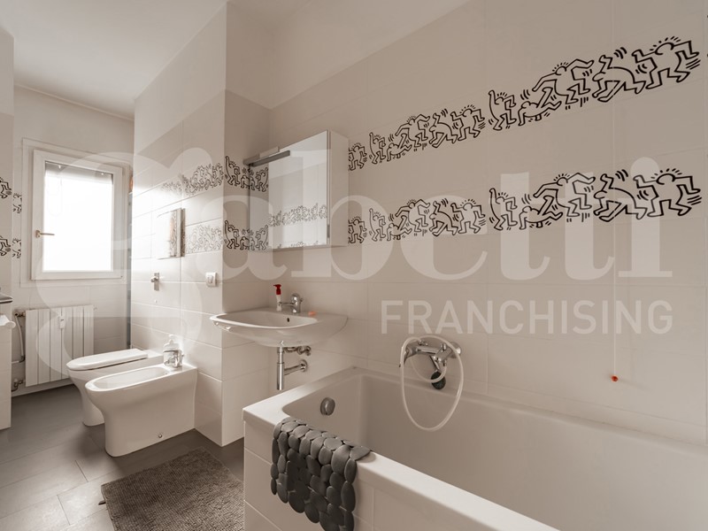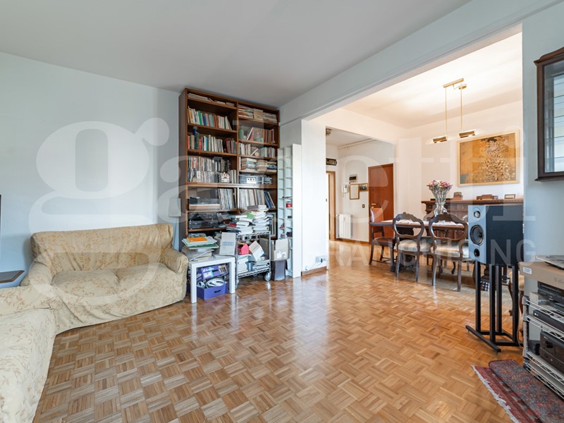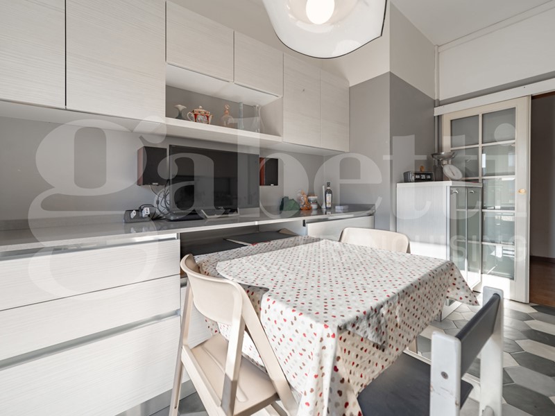 L'immobile, con doppia esposizione est/ovest, è composto da un luminoso doppio soggiorno con accesso a uno dei due balconi, una spaziosa cucina abitabile con accesso al secondo balcone, tre camere da letto ben distribuite, due bagni finestrati e un comodo ripostiglio. Gli ambienti risultano ariosi e ben illuminati durante tutto l'arco della giornata, grazie all'ottima esposizione.