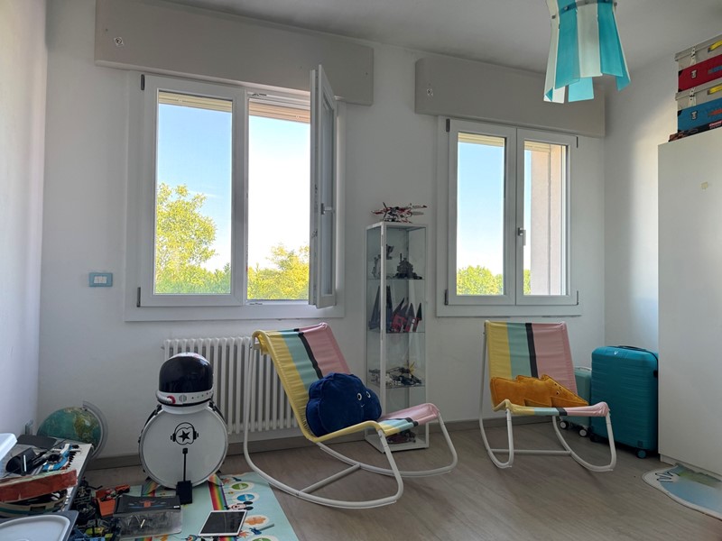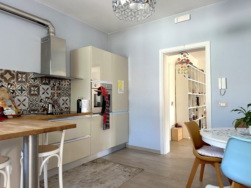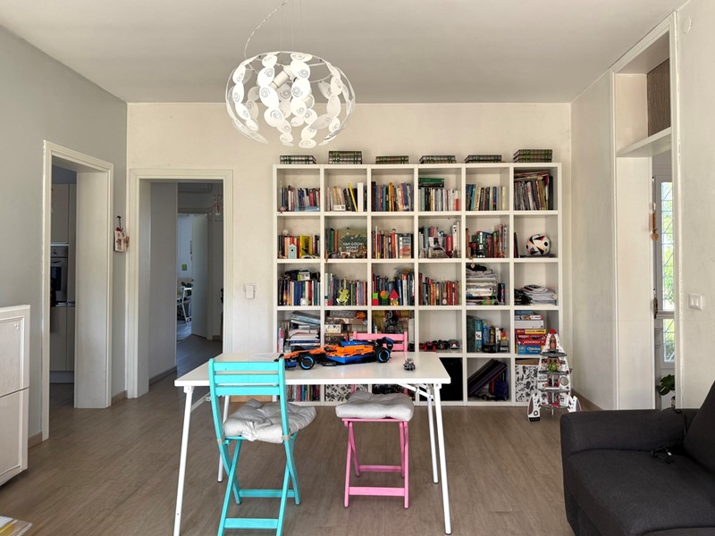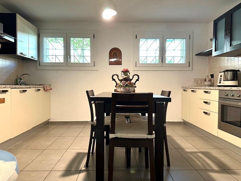 Gli spazi interni si distinguono per la loro ampiezza e luminosità: la zona giorno accoglie un ampio salotto e una cucina in stile americano con cucinino separato, ideale per chi ama vivere la casa in modo conviviale.