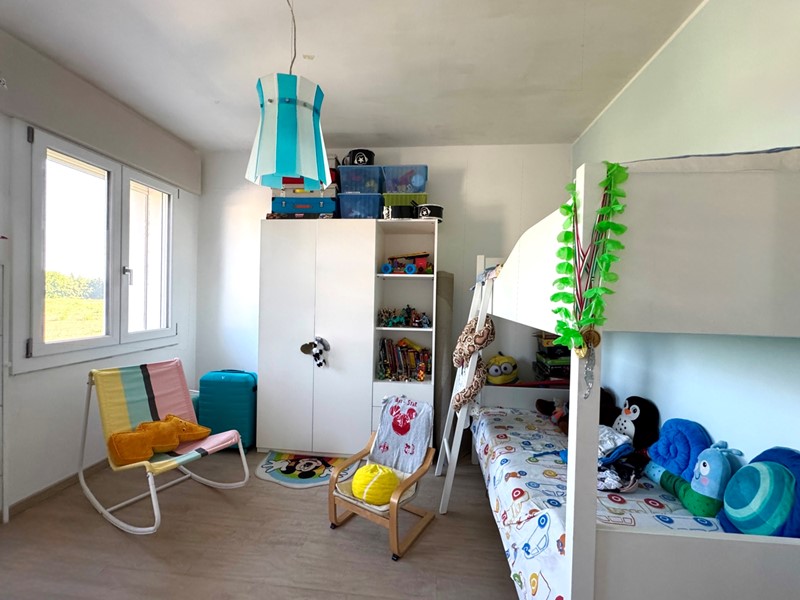 La camera matrimoniale padronale dispone inoltre di un balcone privato, mentre un ampio terrazzo valorizza ulteriormente la vivibilità degli spazi esterni.