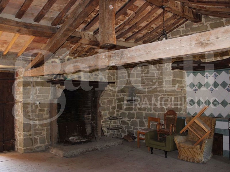 Situato sulle colline di Gubbio, circondato dal verde, casale in pietra composto da due unità abitative al piano primo, entrambe da ristrutturare, con travi in legno e pietra a vista. Una unità comprende un soggiorno, una cucina abitabile con camino, 4 camere e un bagno. L'altra unità è composta da un soggiorno con angolo cottura, una camera e un bagno. A piano terra si trovano le cantine.