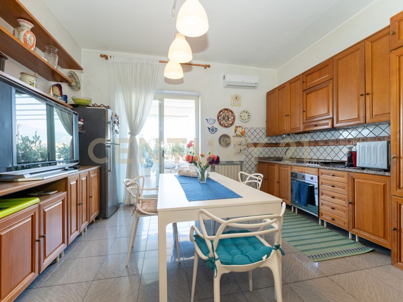 The terrace with the Etna view is equipped with a gazebo, a canopy with retractable blinds, and 25 sqm of the terrace has been enclosed with a veranda that is already regularized. The veranda includes a boiler, laundry area, stove, and sink.