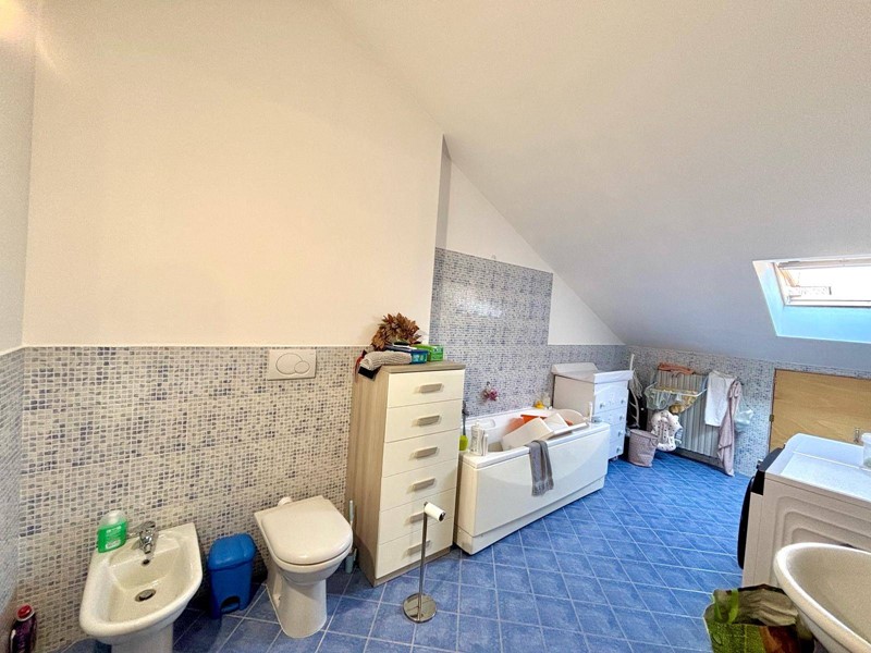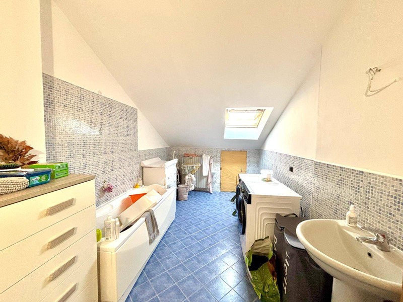 Ingresso su disimpegno, Soggiorno doppio, cucina abitabile, bagno con doccia e TERRAZZO perfetto per pranzi e cene, zona notte di 2 stanze (sottotetto/locale sgombero) molto alte e godibili, di cui una matrimoniale, un angolo sfruttabile come studio, sala da bagno con vasca, perfetto come lavanderia.