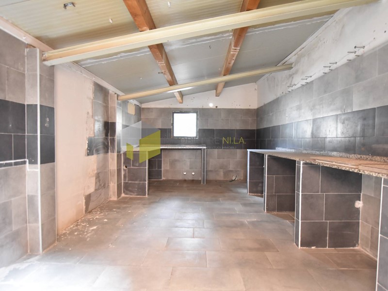 L'ingresso è nell'ampia area del locale principale che da accesso anche al resede retrostante. Da questo ambiente si raggiunge anche un ulteriore locale, attualmente piastrellato e il bagno dell'immobile. Nell'area esterna, posta sul retro del fabbricato, il resede pavimentato da accesso al grande giardino, a due spaziosi e comodissimi annessi da poter sfruttare a seconda delle esigenze e ad un piccolo bagno.