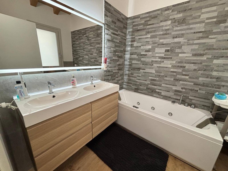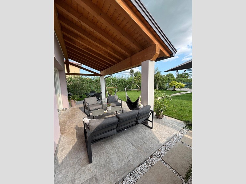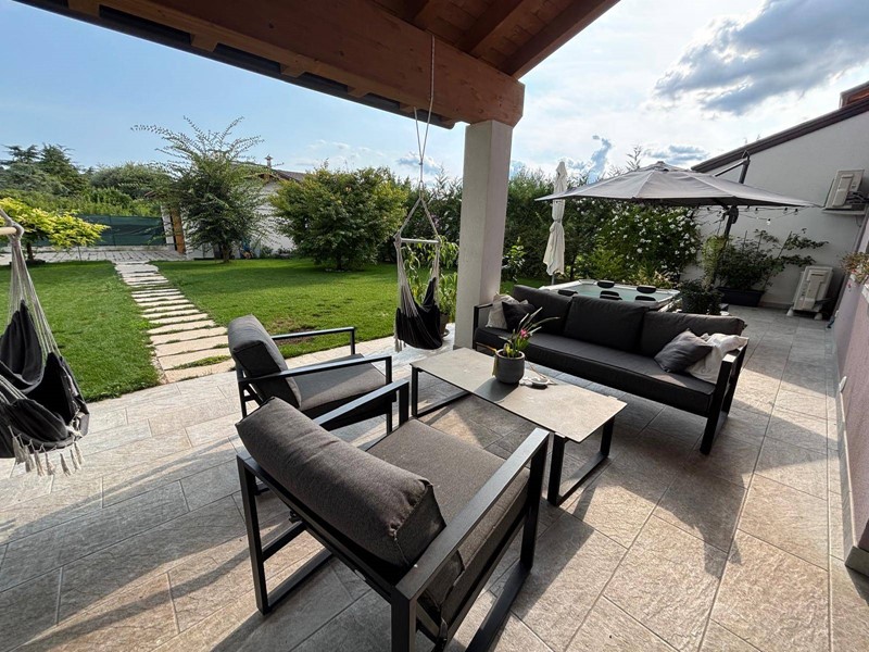Ma il vero punto di forza è allesterno: un giardino riservato, perfettamente curato, dove troviamo una vasca idromassaggio! Immagina di rientrare a casa ed immergerti nelle bolle, sorseggiando un drink al tramonto... il tutto nella quiete del tuo spazio privato.