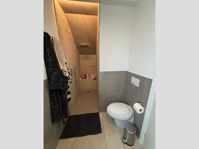 Completano il piano terra un bagno con doccia dal design contemporaneo e una pratica lavanderia separata, con centrale termica.