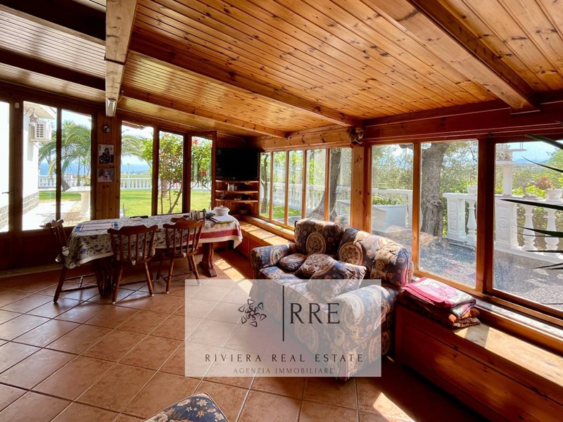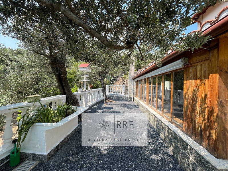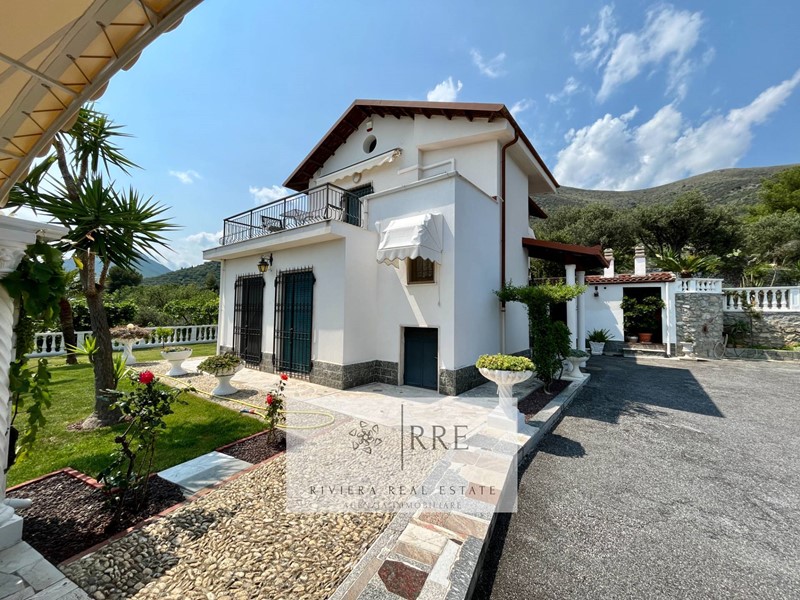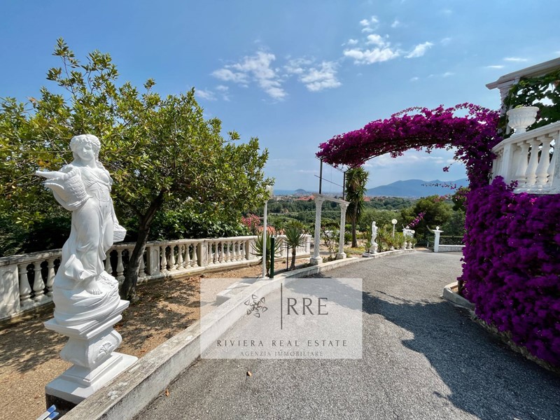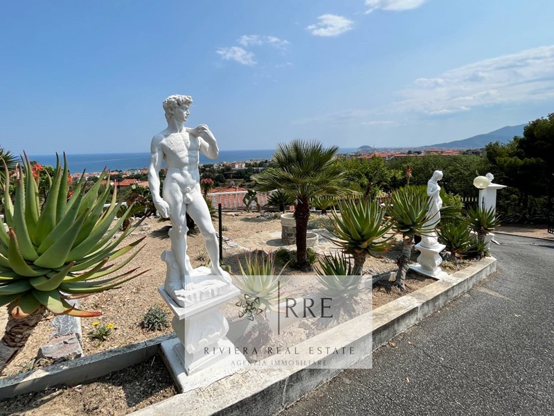 Tutta la proprietà ha al suo esterno una Gazebo di 50 mq. totalmente coperto dal quale si gode di un'incantevole vista mare dominante sul mare e con l' Isola Gallinara sullo sfondo, 2600 mq di terreno circondano la villa, divisi tra giardino, parco con ulivi a macchia mediterranea, prati all'inglese, fiori ornamentali e ogni genere di albero da frutto, con ampie terrazze perfette anche per la realizzazione di una bellissima piscina, il tutto perfettamente recintato.