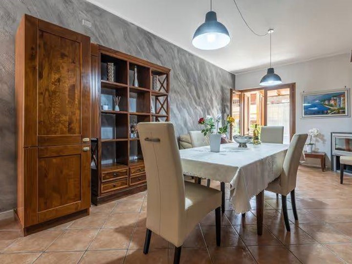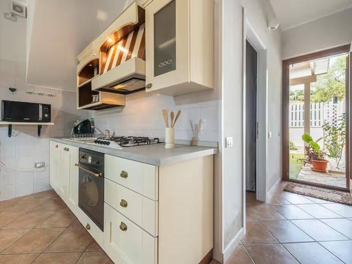 Il piano terra accoglie un luminoso soggiorno con angolo cottura, servito da bagno e caratterizzato da doppia uscita sui cortili esterni: quello frontale con pergola in legno, perfetto per momenti di relax, e quello retrostante, riservato, completo di pergolato e predisposizione barbecue, ideale per pranzi e cene allaperto.