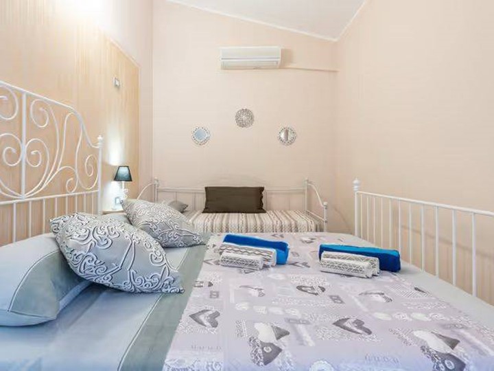 Al primo piano, zona notte composta da camera matrimoniale e camera singola, entrambe con balcone privato, e secondo bagno.