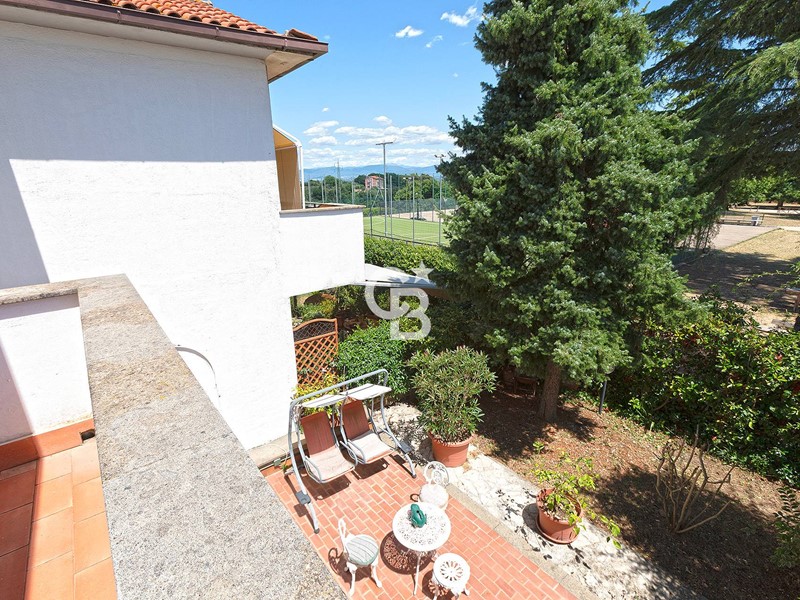 Al piano terra, una zona giorno accogliente composta da un ampio salone con camino, una grande cucina abitabile e un bagno di servizio. Tutti gli ambienti affacciano su un giardino curatissimo, impreziosito da un ampio portico in legno, perfetto per momenti di relax e convivialità allaperto.