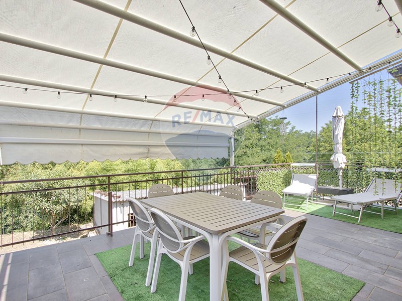 Al primo piano abbiamo un'altra cucina con grande terrazzo abitabile e arredabile con tavolo, dondolo, barbecue e tutto il necessario per godersi serate all'aperto da soli o in compagnia, un soggiorno-sala, 2 camere matrimoniali (una con cabina armadio finestrata) e un bagno, recentemente ristrutturato.