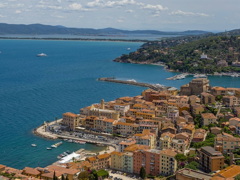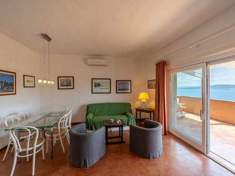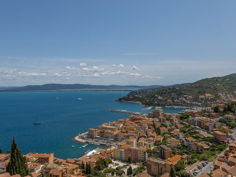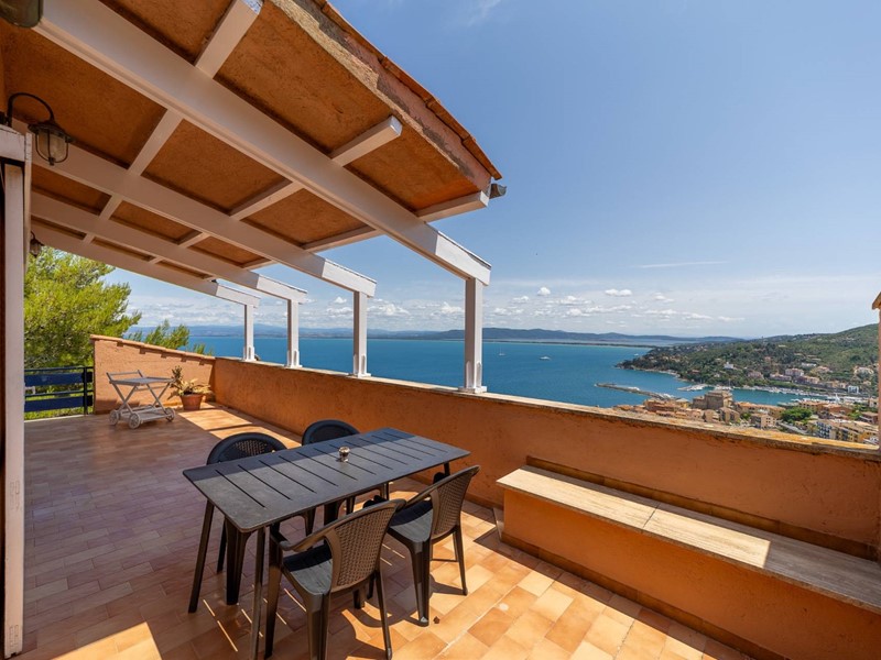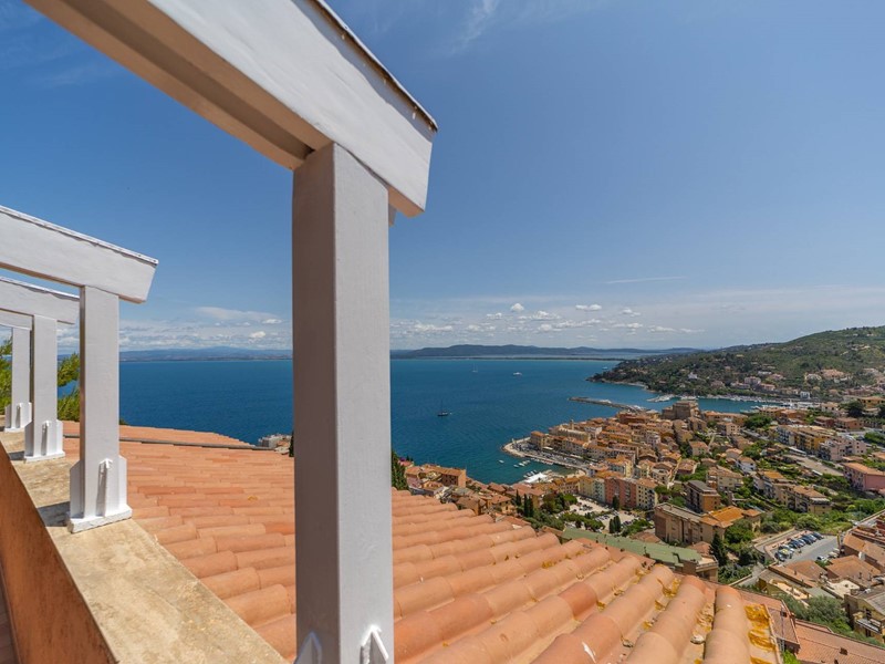 Punto di forza della proprietà è il grande terrazzo, accessibile sia dal soggiorno che dalla camera da letto, affacciato sulla piazza principale e con una splendida vista sul mare, che spazia fino al Tombolo della Giannella, Orbetello e il Golfo di Talamone.