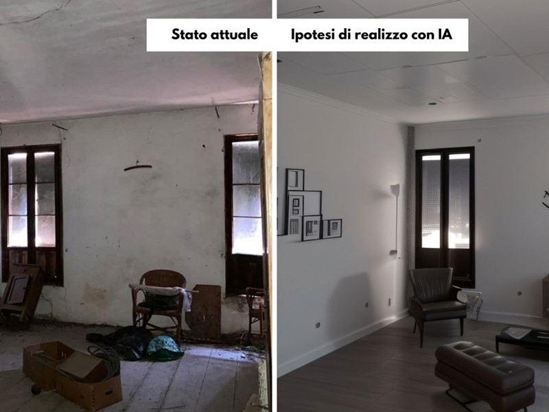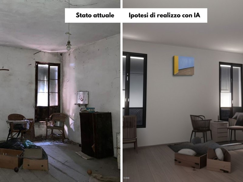 Villa, accostata ad un lato, sviluppata su tre livelli, completamente da ristrutturare, come si può notare dalle foto, nelle quali viene proposta un'ipotesi di realizzazione.