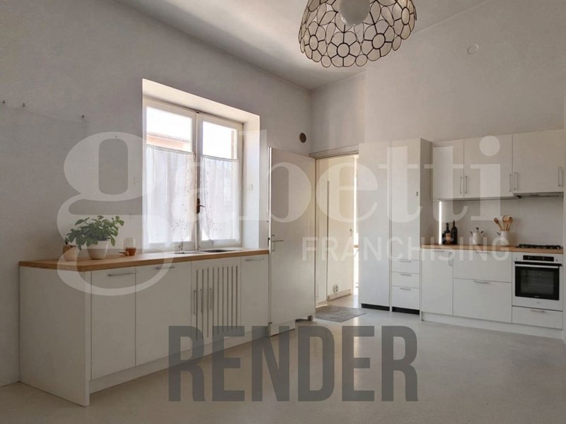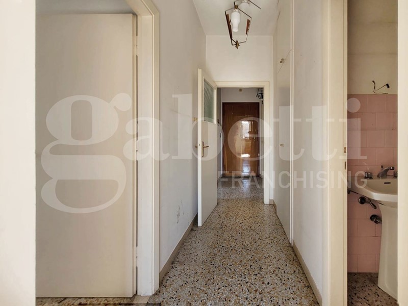L'appartamento di circa 97mq è da ristrutturare ed è attualmente organizzato in un ingresso su disimpegno, cucina abitabile con veranda, sala, corridoio, due camere da letto matrimoniali, un bagno con antibagno e due ripostigli.