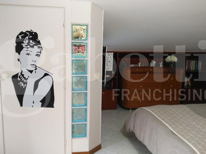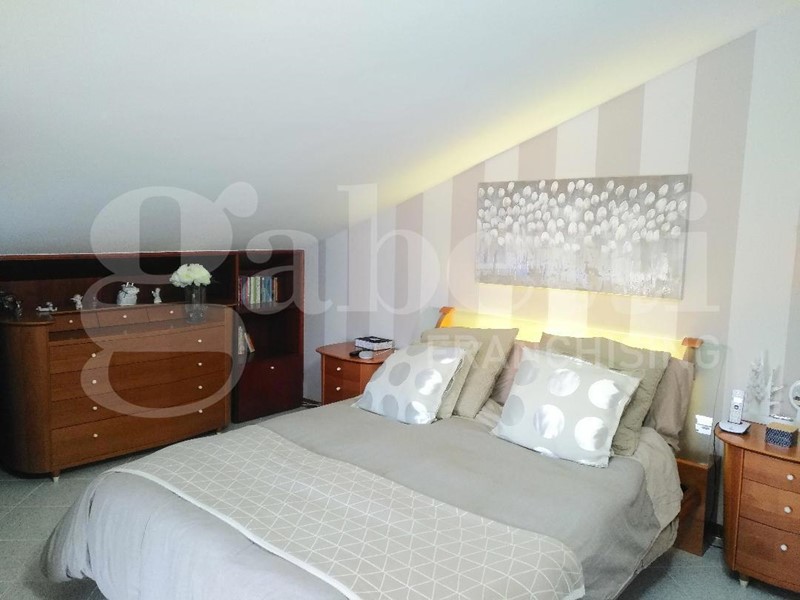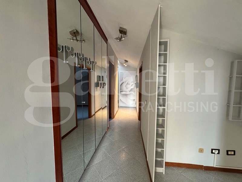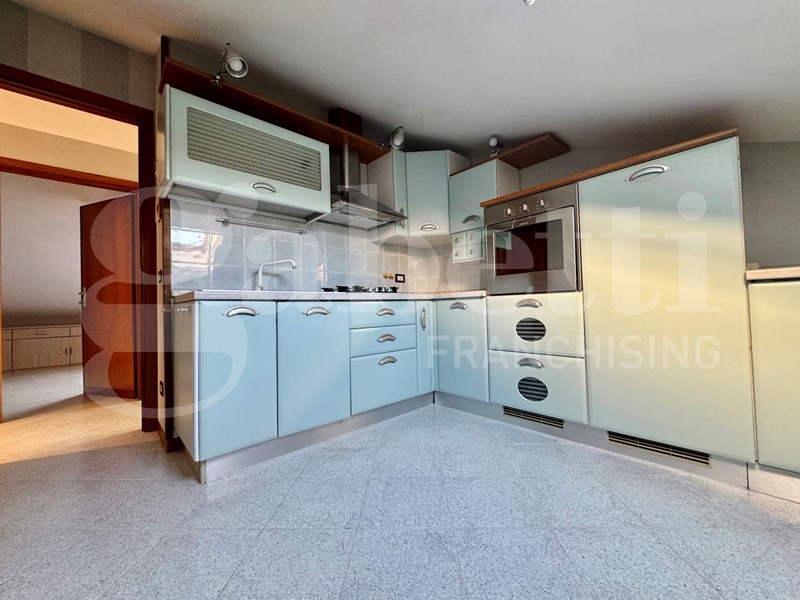 L'appartamento, mansardato, si sviluppa su un unico livello, è composto da un ampio ingresso che ci porta nel soggiorno con balconcino antistante, due camere da letto di cui una con cabina armadio, cucina abitabile e bagno con doccia e finestra.