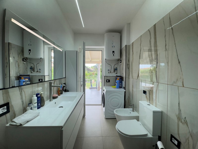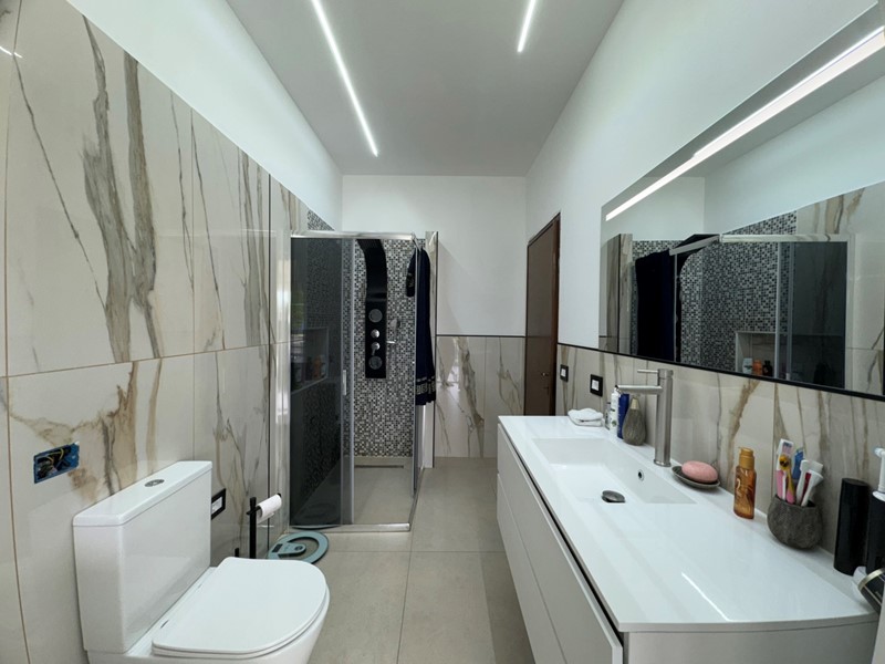 Salendo al primo piano, la zona notte si compone di tre camere matrimoniali di generose dimensioni, tutte caratterizzate da una buona illuminazione naturale. Sempre al piano primo è presente un secondo bagno, anch'esso con box doccia, in fase di ultimazione: i lavori verranno conclusi a breve, completando così la ristrutturazione dell'intero immobile.