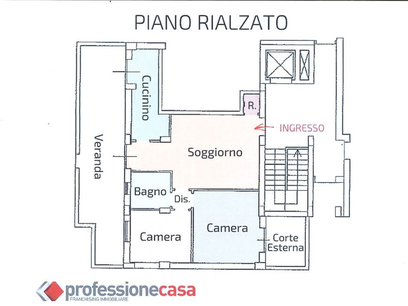 La soluzione è composta da: soggiorno, cucinino. 2 camere, bagno e ripostiglio.