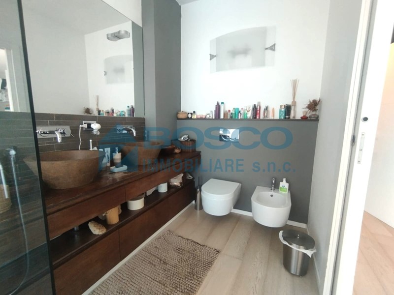 Luce, eleganza e funzionalità: una cucina abitabile separata da ampie vetrate scorrevoli dall’arioso salone. Zona giorno perfettamente organizzata, con bagno di servizio, ripostiglio e uscita diretta su una terrazza attrezzata di circa 150 mq, perfetta per cene all’aperto e relax